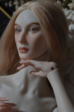 The doll is made of porcelain, OOAK, height 36 cm. Painted with overglaze China Paints. The doll is assembled on springs, the joints are lined with leather. The cape is made of silk, embroidered with beads. Alpaca wig, removable on a magnet.