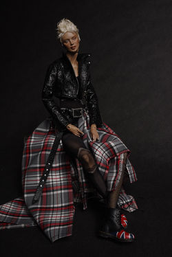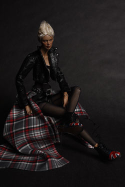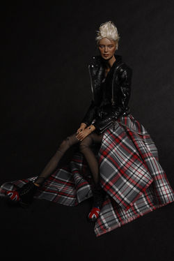 is OOAK author's doll, made of fine porcelain, painted with chinapaints. The doll is assembled on a steel spring. The wig made from natural mohair, removable, on magnet. The outfit is made of eco-leather and cotton.