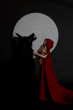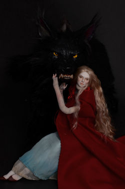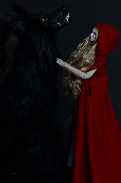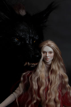 образ выполнен по мотивам романтического фильма ужасов режиссёра Кэтрин Хардвик. Готическое переложение сказки «Красная шапочка».