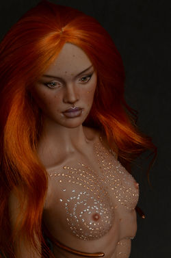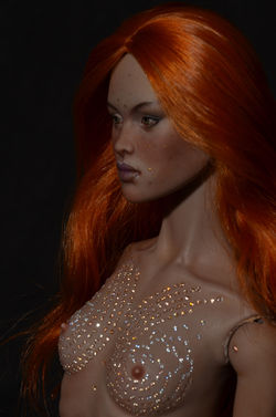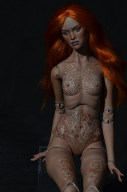 авторская кукла OOAK, выполнена из тонкого фарфора, расписана надглазурными красками. Кукла собрана на стальной пружине. Парик из натурального мохера, съемный, на магните. Инкрустация цирконами. Гравировка и тату с использованием металликов, золочение