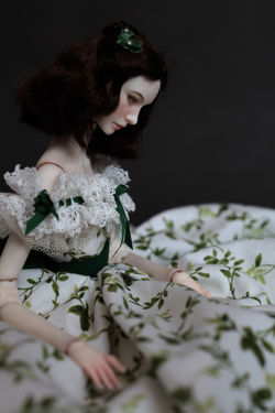 The clothes are made of natural silk and cotton, the hat is made of Italian straw. Shoes are made from polyurethane